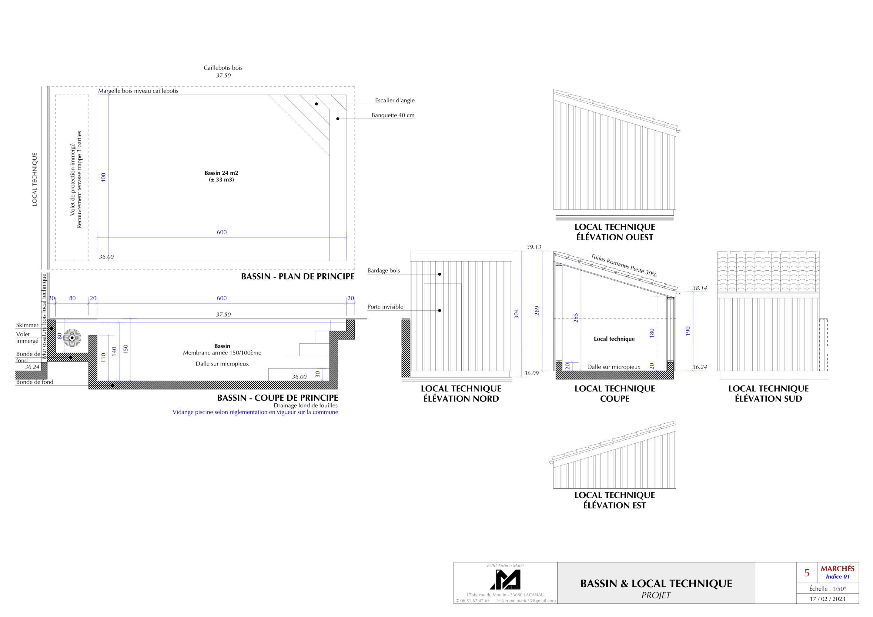 Le projet a pour objet la restructuration d’une terrasse et d’un bassin en secteur dunaire faisant suite à un léger glissement de terrain ayant entrainé des désordres et un affaissement des équipements.