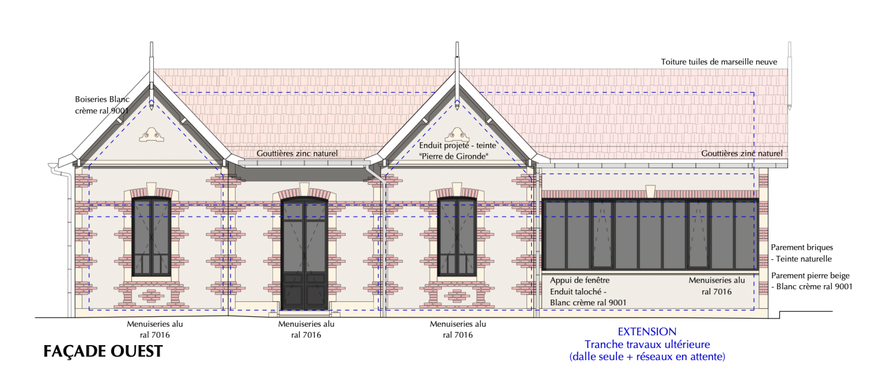 Au final, le bâtiment a retrouvé son charme d’antan avec ses façades entremêlant pierre de taille, briquettes de parement et enduit, avec sa charpente ouvragée et sa couverture entièrement restaurée. Les menuiseries en aluminium font le trait d’union avec notre époque contemporaine. L’extension soulignera d’autant plus cet aspect lorsqu’elle sera réalisée.